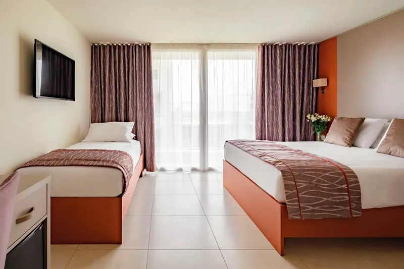 Set in lively Qawra with Bugibba just along the promenade, the Mayflower Hotel is a smart base when you want an easy Malta break with plenty to explore on foot. You can reach the waterfront in a few minutes for a swim at the lidos or a stroll along the low rocky shoreline. Rooms feel fresh and modern with clean lines and useful touches like a kettle and a compact fridge. Staff keep things friendly which makes arrivals and busy days out simple to manage.